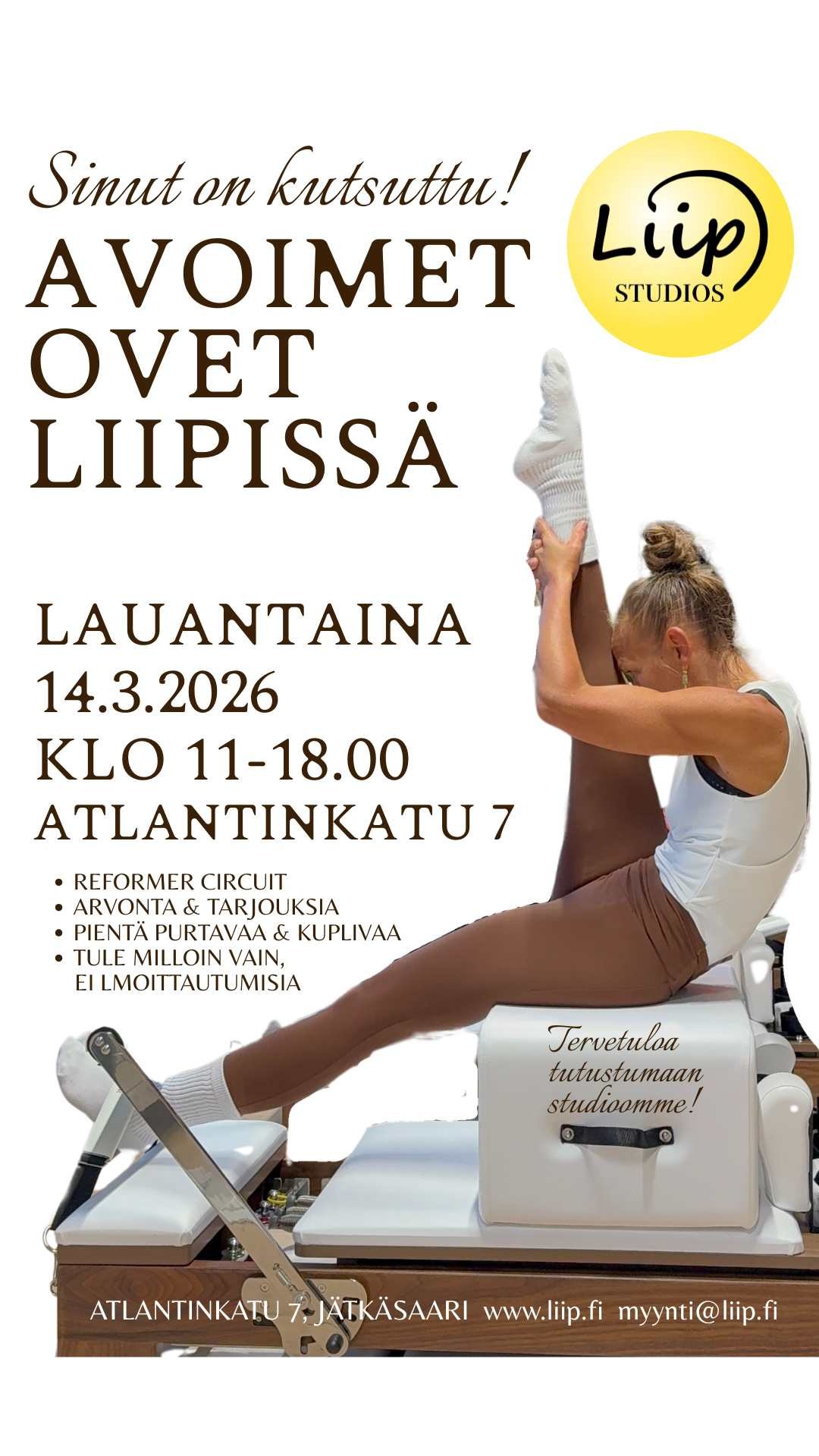 OPEN DOORS with MID SEASON PARTY: Reformer circuit, open bar(re): healthy snacks & bubbles, raffle & offersSaturdays are for fun courses and intros!